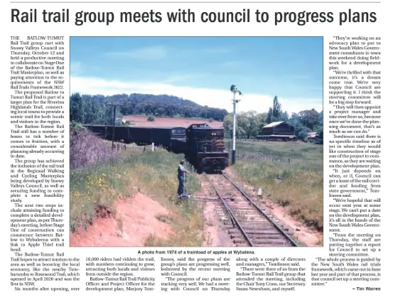 In September 2020 Batlow’s Harald Tietze and Marjory Tomlinson decided it was time to fire up the BatlowTumut Rail Trail proposal again.